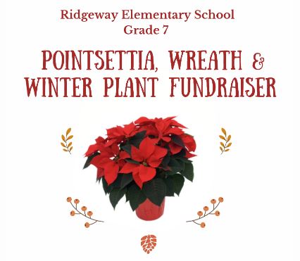 | Ridgeway Elementary School Grade 7 Poinsettia & Winter Plant Fundraiser ORDER DEADLINE Wednesday Nov 12 Pick up Friday November 28, 2:30pm-3:30pm @ RIDGEWAY (by back gym doors) |